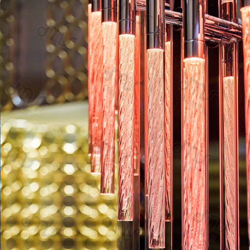 大型會所酒店水晶玻璃棒重柱裝飾燈具
