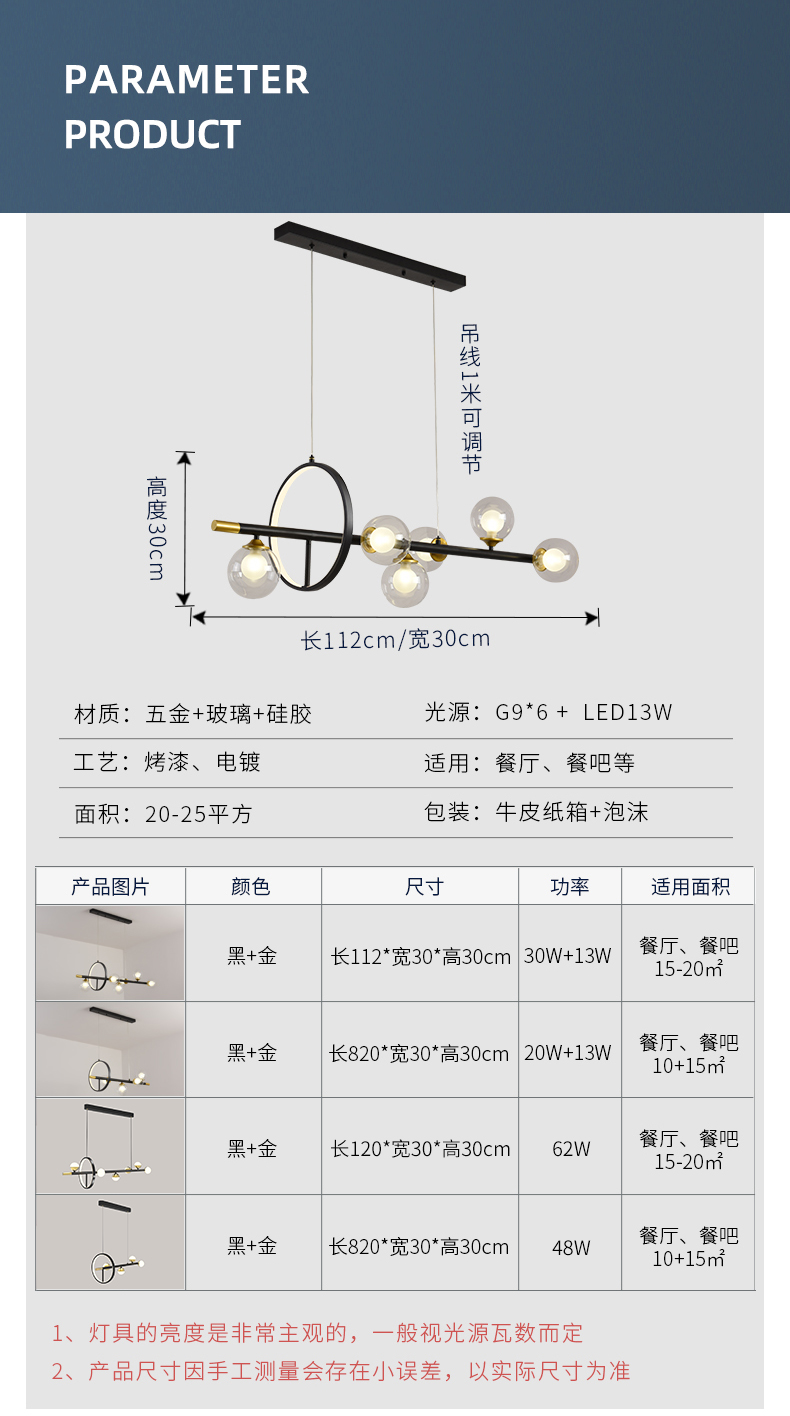 鐵藝+玻璃 餐廳吊燈